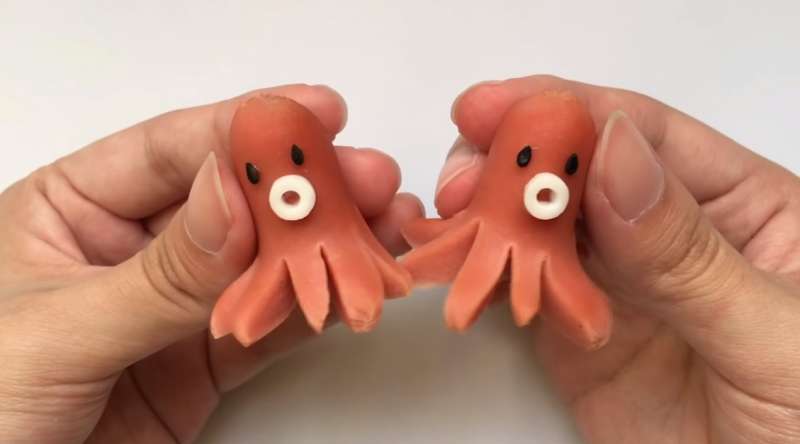 ▼貼上黑芝麻當眼睛和嘴巴,可愛的小章魚就完成了!