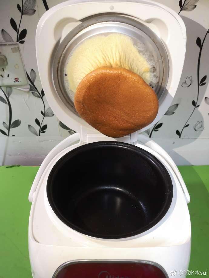 2018年10月15日租小套房及在校住宿的學生,只能外食的情況下,電鍋及快煮鍋是必備的開伙神器,尤其住宿還有限電的狀況下,不能使用高耗能電器用品,如果造成跳電就糟糕了!而大陸一名女網友「鄔水水sui」,平常就愛做蛋糕,前一晚在學校宿舍利用電鍋製作蛋糕,隔天一早打開電鍋之後,不只嚇到自己,把成品照分享上微博後,笑倒許多網友,引起熱議。