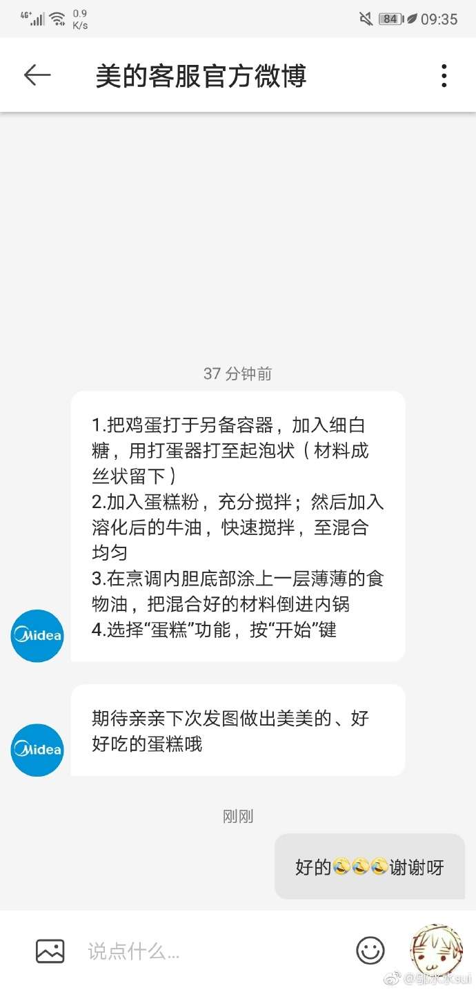 ▼因為這個照片造成網友廣大迴響,連電鍋品牌的客服都來私訊鄔水水,提供蛋糕教學指導,希望可以再做出美美又好吃的蛋糕!