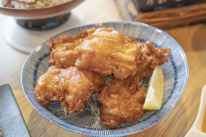 酥脆又金黃的外皮,輕咬一口雞汁一湧而出,一旁有附檸檬片,擠一點在炸雞上能讓滋味更清爽喔~