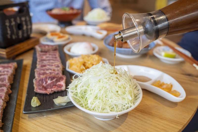 ▼炸牛食附有高麗菜絲,爽脆好入口,有作為開胃前菜或是舒緩油膩的功用,一口炸牛排,一口高麗菜絲,營養與口感同時兼顧!