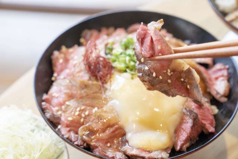 ▼上頭有一顆我最愛的半熟蛋!將半熟蛋輕輕劃開,夾塊牛小排沾滿蛋液,吃起來更加滑順,也很建議將半熟蛋與白飯混合,更能增添甜味喔