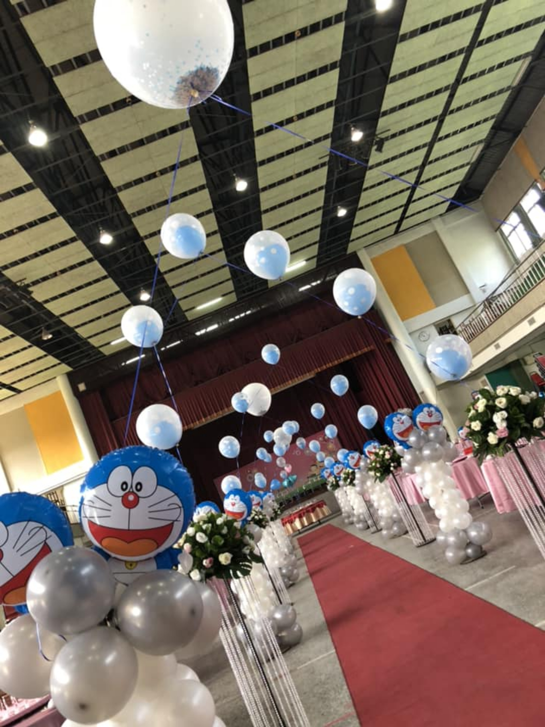 ▼寬廣的國小禮堂就是舉辦婚禮的會場,新人將會場精心佈置得很溫馨。