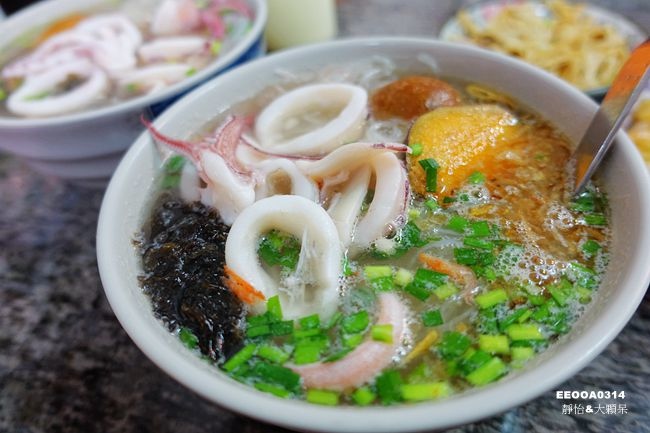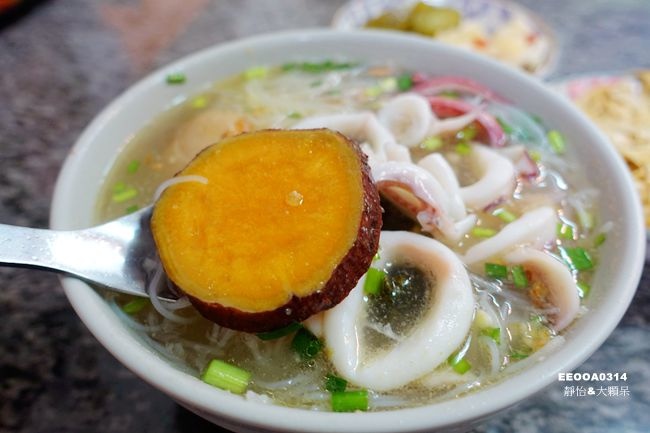 ▼一大片的帶皮地瓜片,第一次見到米粉湯內有整片地瓜的,通常都是在稀飯裡才見得到地瓜…