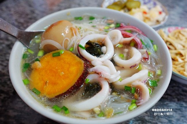▼米粉的湯是使用土雞所熬煮的,另外再加上韭菜、油蔥酥及海苔等提味。