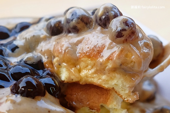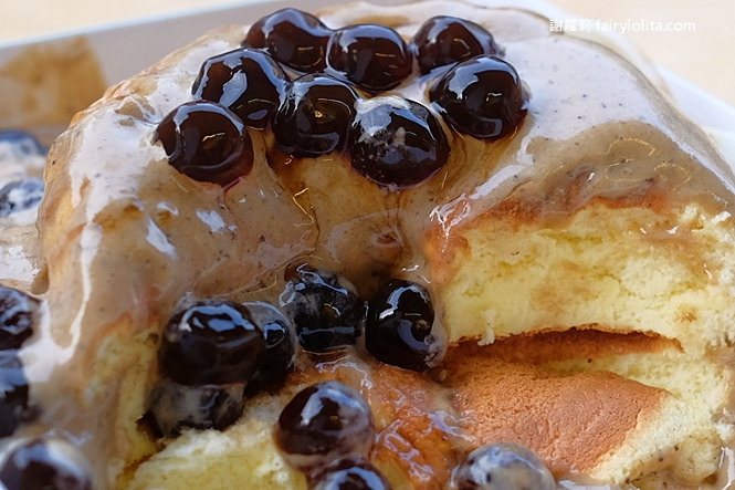▼伯爵奶茶淋醬香氣是我喜歡的。香濃而不會太過搶戲,配上軟軟鬆鬆豐厚鬆一起吃,還真的蠻有幸福的感覺,甜度是不會太高,但老實說吃到後來還是有些顯膩,會比較建議大家配著無糖茶品一起吃比較剛好呦!