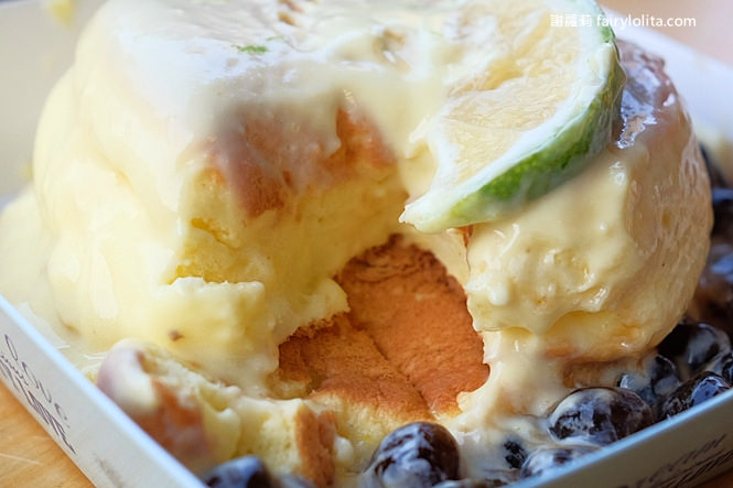 ▼很愛它們家的用檸檬調製的淋醬,顏色呈現淡淡的乳黃顏色,都還沒吃、就能聞到一股酸香的氣味。如果你不愛吃甜、亦或很怕太膩的甜點,自己會最推薦這一款給你,從第一口品嚐到最後一口,你完全不會有覺得膩口的感覺,反而意猶未盡,會很著迷於那香檸帶來的天然果香:)