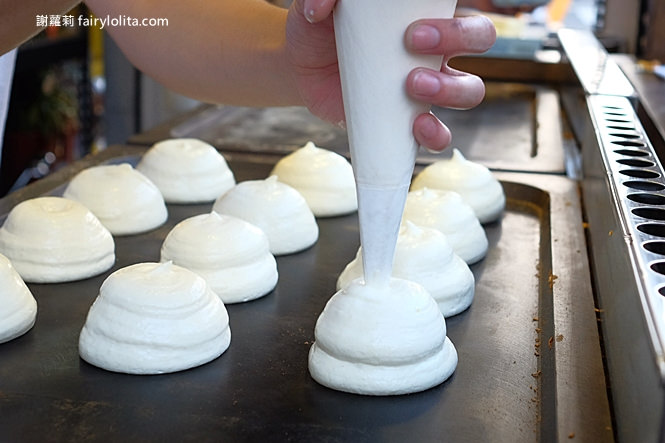 ▼現場看店家製作舒蕾芙其實很療癒,一個一個白胖胖,感覺就像一圈圈雪白的綿花糖,一附超鬆綿的樣子:)