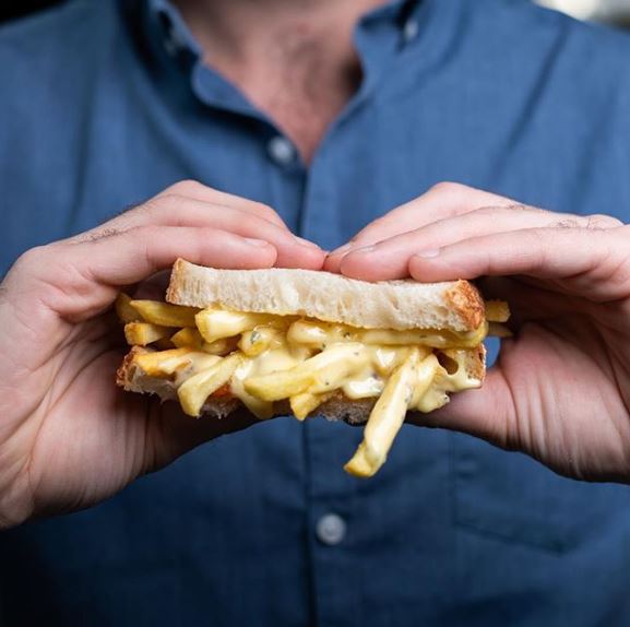 ▼1. 三明治裡面都是滿出來的薯條和美乃滋!
