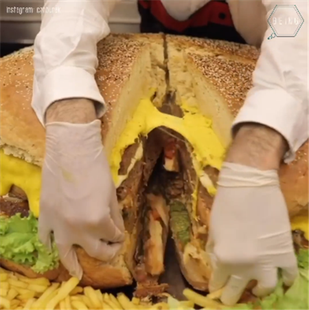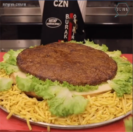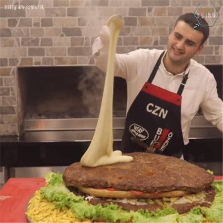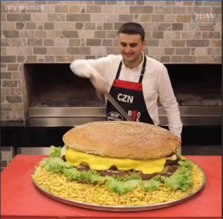 2018年12月11日你如果對土耳其廚師布拉克·歐茲德米爾(Burak Özdemir)說「我只吃一個漢堡」,那麼你知道這將意味著什麼嗎?布拉克擅長製作各種浮誇的超大尺寸食物,因此成為了網路紅人。他經常在IG上展示巨型烤串、大餅等的製作過程,讓人看得相當過癮,加上全程保持魔性的微笑臉,吸引了一大票的網友追蹤。日前他又製作了一款巨大的牛肉起司漢堡,網友們不禁驚呼:「這才是真正的巨無霸啊!」