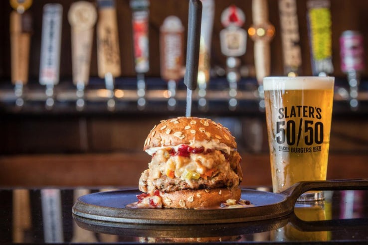 ▼SLAB漢堡:與其說這是漢堡,不如說是餡餅。醬料夾在2片披薩之間,非常特別。