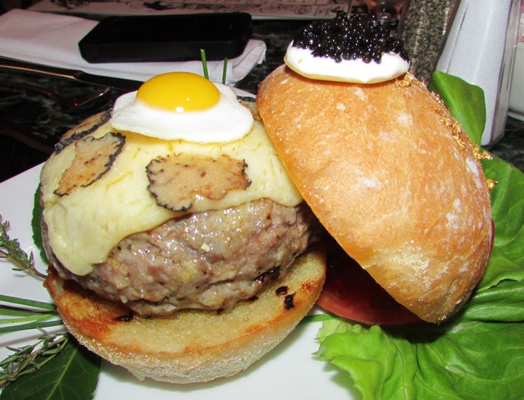 ▼LE BURGER EXTRAVAGANT:這種奢侈的漢堡中有日本和牛牛肉、白松露、煙燻海鹽、切達起司、黑松露、鵪鶉蛋、魚子醬等等。