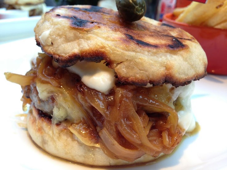▼法式洋蔥湯漢堡:這種漢堡的精髓就是奶酪和洋蔥。