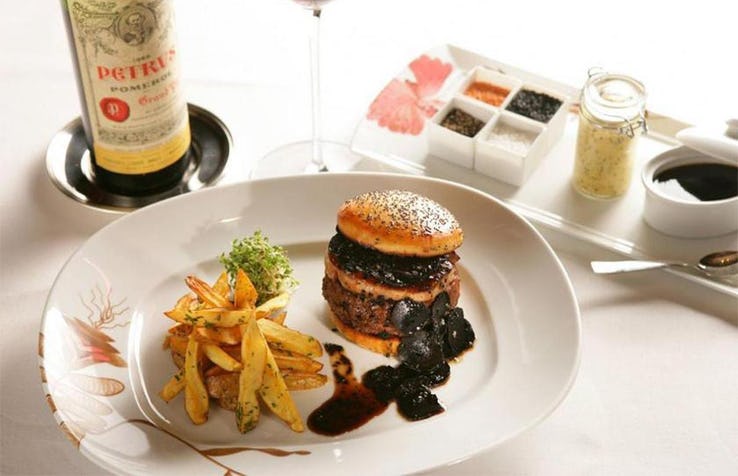 ▼FLEURBURGER 5000:漢堡內有頂級神戶牛肉、鵝肝、黑松露,店家還會附送1995年的ChateuPetrus。