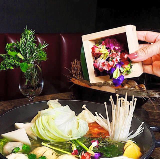 ▼選完鍋物之後,會來一盤花,你以為是裝飾物嗎?不!是為了放進火鍋裡烹煮的,增添香味同時也可以嘗試吃花新體驗!吃鍋也能吃的美!