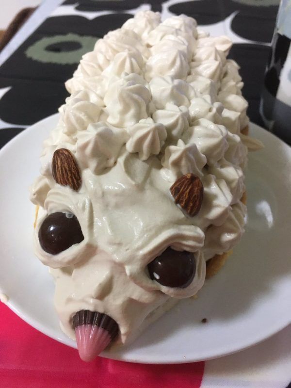 ▼但丈夫最後完成的作品是這樣的…雖然誠意滿滿,但這蛋糕的賣相讓人一言難盡。崩壞的刺蝟非但不可愛,反而很恐怖啊。