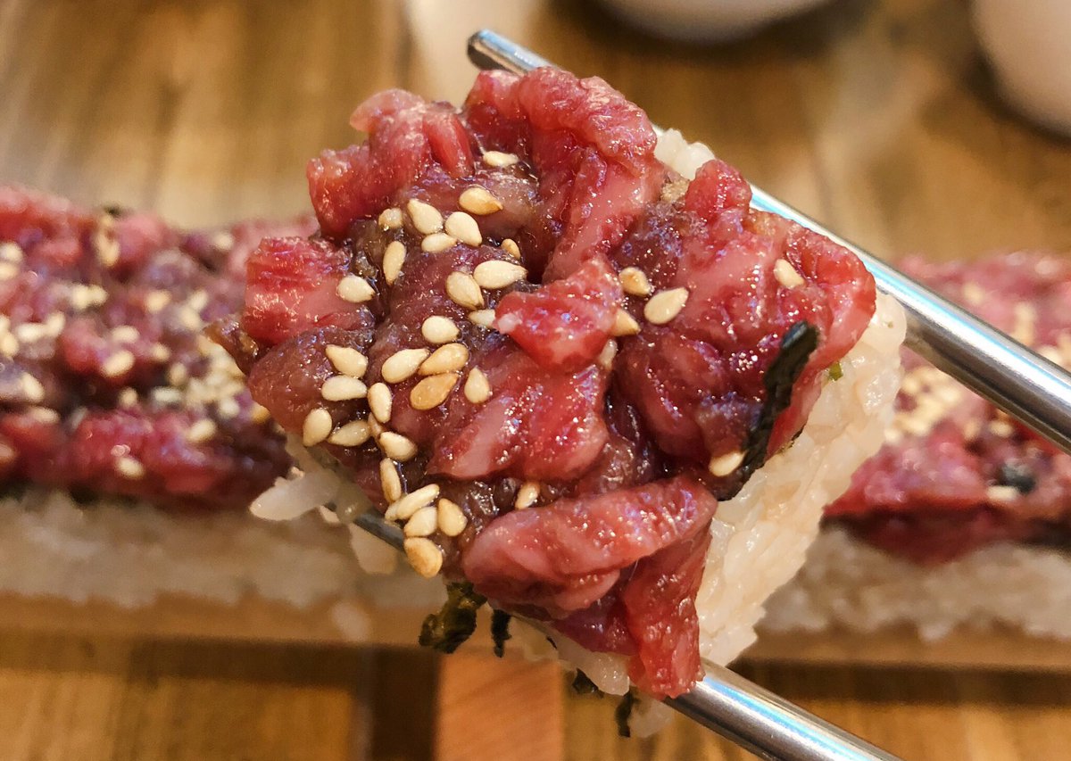 2019年01月11日韓流席捲了全世界,就連文化相近的日本也無法避免,在東京的新大久保儼然已經成為了當地的「韓國街」,在這裡除了能享用到正宗的韓式料理之外,還有許多改良版的日本美食都能夠找得到。其中一家韓式料理店「PALLET46」就推出了超誘人的「生和牛壽司」(和牛ユッケ寿司),馬上引起了許多網友的討論。