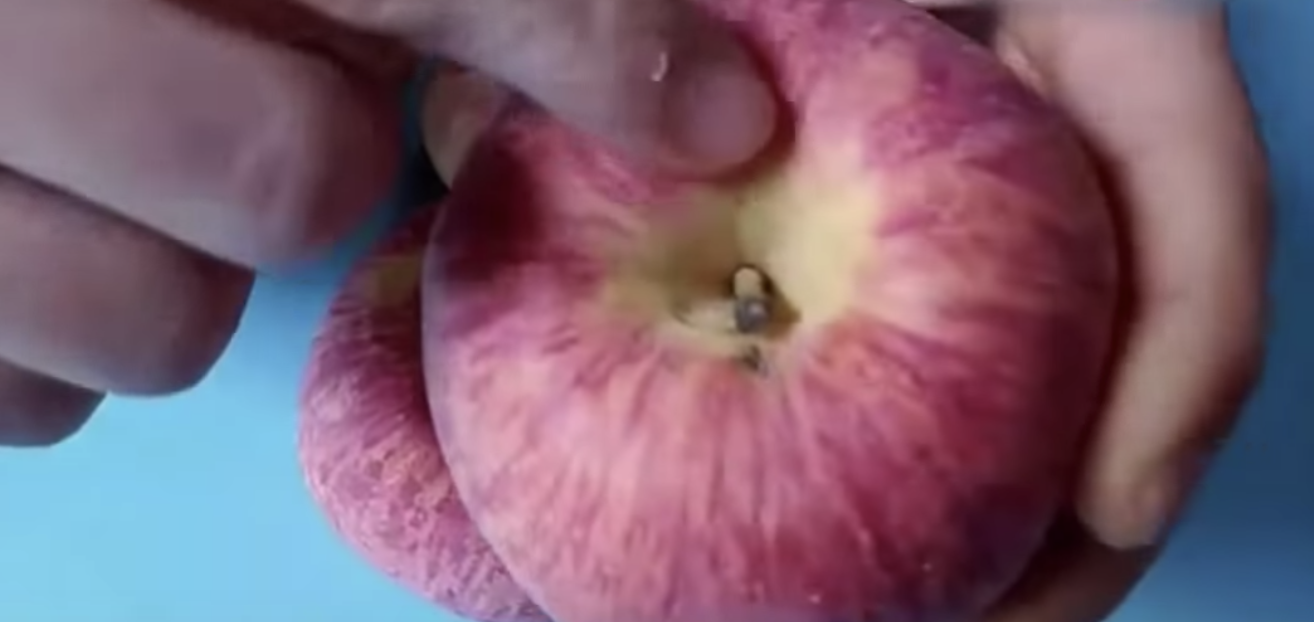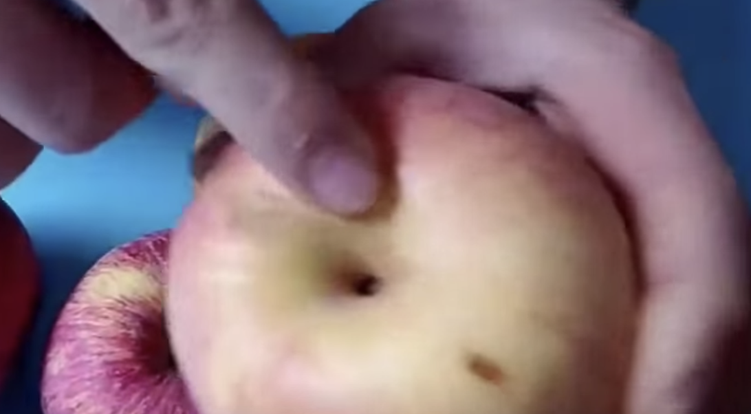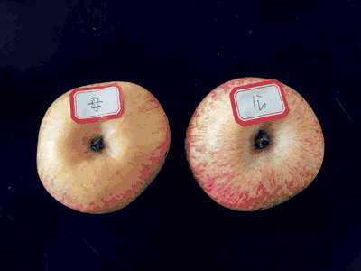 ▼如果蘋果底部肚臍眼又窄又小,那就是公蘋果了,對比母蘋果就稍稍遜色些。