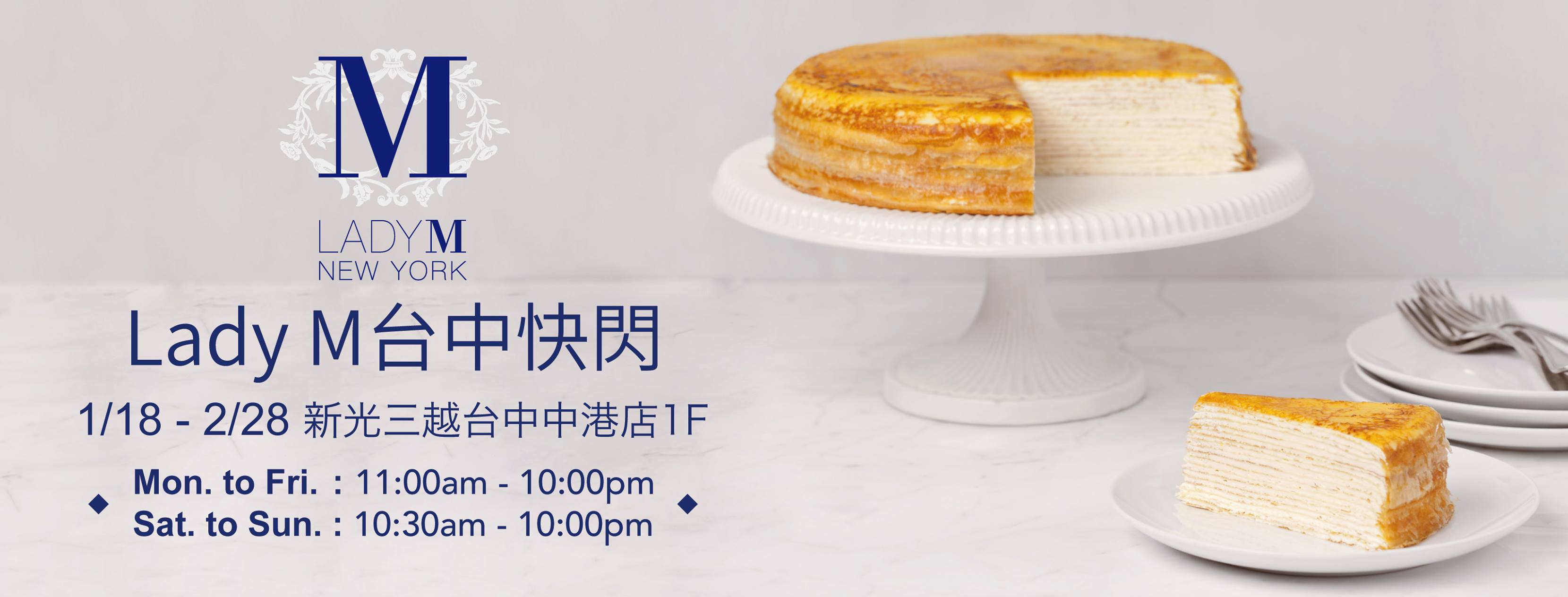2019年01月17日來自紐約的甜點「Lady M」在2017年進駐到台灣,在台北有著兩家分店,想滿足口福的朋友,以往都得北上一趟,不過近日Lady M即將要快閃台中啦!真是太好了!