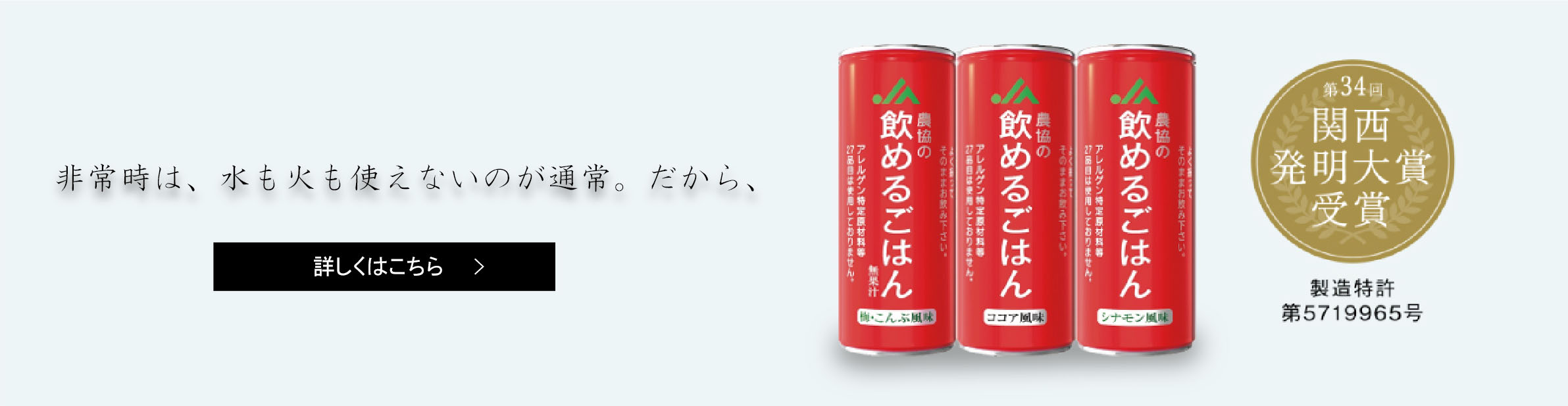 ▼日本北大阪農業合作協會(JA Kita Osaka)近期推出了新的災害應對商品-喝的米飯(飲めるごはん),榮獲關西第34回發明大獎。