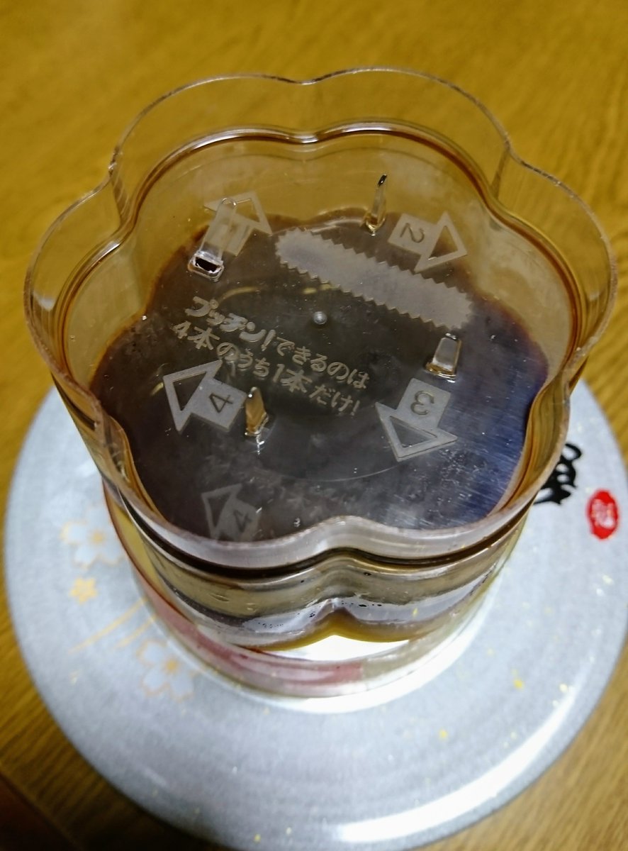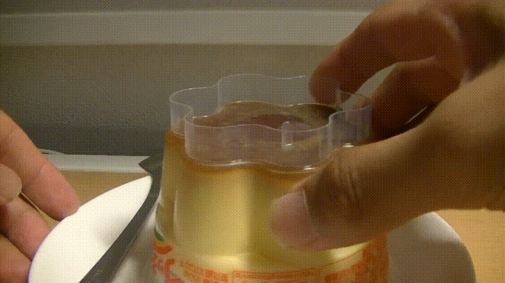 ▼如今這款布丁為了增加趣味性,將底部的栓子一口氣增加到了4根之多,可是當中只有1根是真正有用的,只有拗斷那根才能將布丁順利倒出。