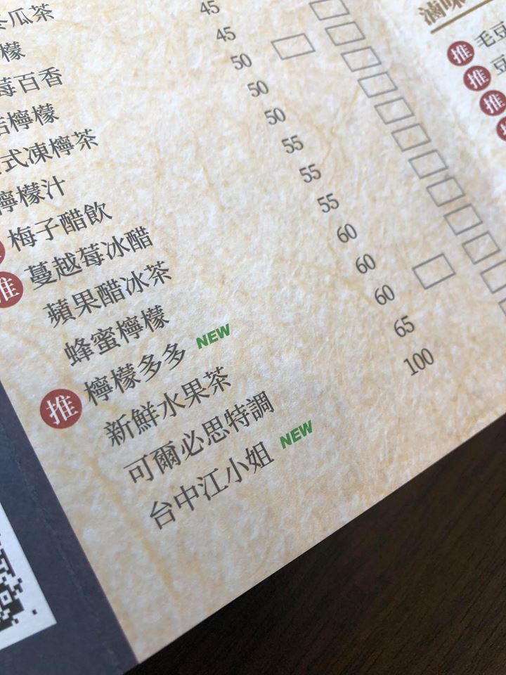 ▼對比其他50元、60元品項,「台中江小姐」竟要價100元,難怪引起網友注意。