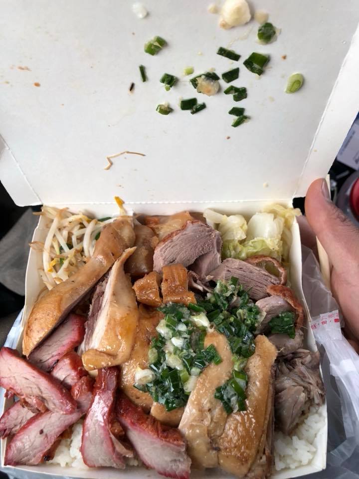 ▼網友在臉書社團「斗六人文社交圈」分享一張便當照,釣出不少吃肉一族的留言,便當十分豐富,「超級三寶飯」內含超大塊燒鴨、油雞與叉燒,足足佔去整個便當盒,還可看見便當和依稀撐爆變形的情況,如此豐富的便當竟然只要100元,引起熱烈討論。