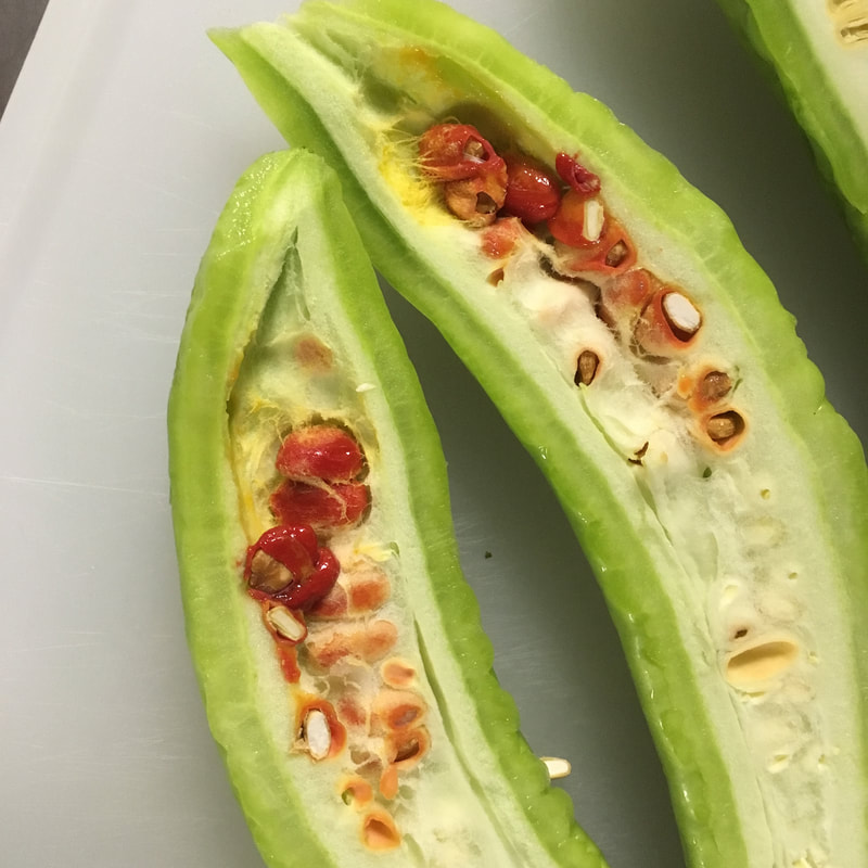 ▼如果你以為瓜果類蔬菜表面光滑,不會有菜蟲的話,那就大錯特錯了!苦瓜、黃瓜和絲瓜等蔬菜容易在生長果程中蟲子鑽入瓜內產卵,蟲卵孵化後吃掉瓜肉和種子,一般來說很難發現。