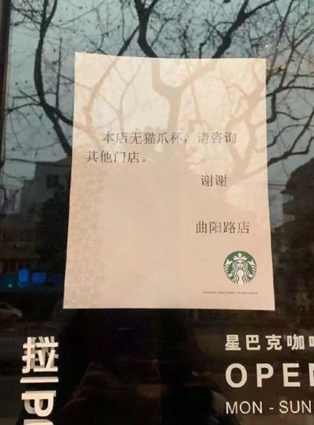 ▼一些門市也貼出公告,告知客人該門市沒有販售貓爪杯。