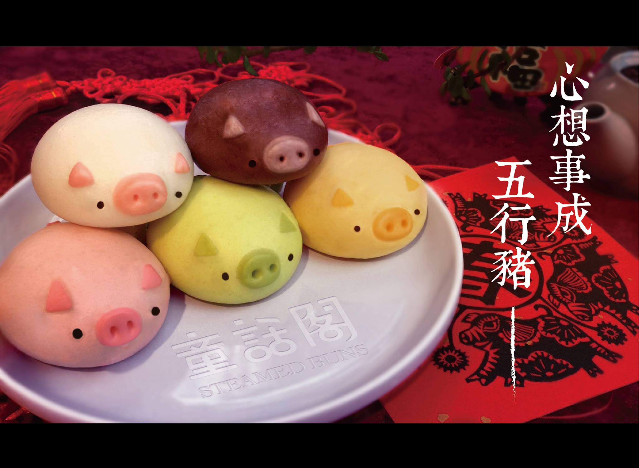 ▼2019年是豬年,市面紛紛出現小豬商品,童話閤也不例外,但他們的小豬造型饅頭可不簡單!把中國哲學文化的木、火、土、金、水「五行」,融入小豬元素當中,而各個小豬還有著不同的祈福意義!讓人不禁想到日本的達摩(*´∀`)~♥
