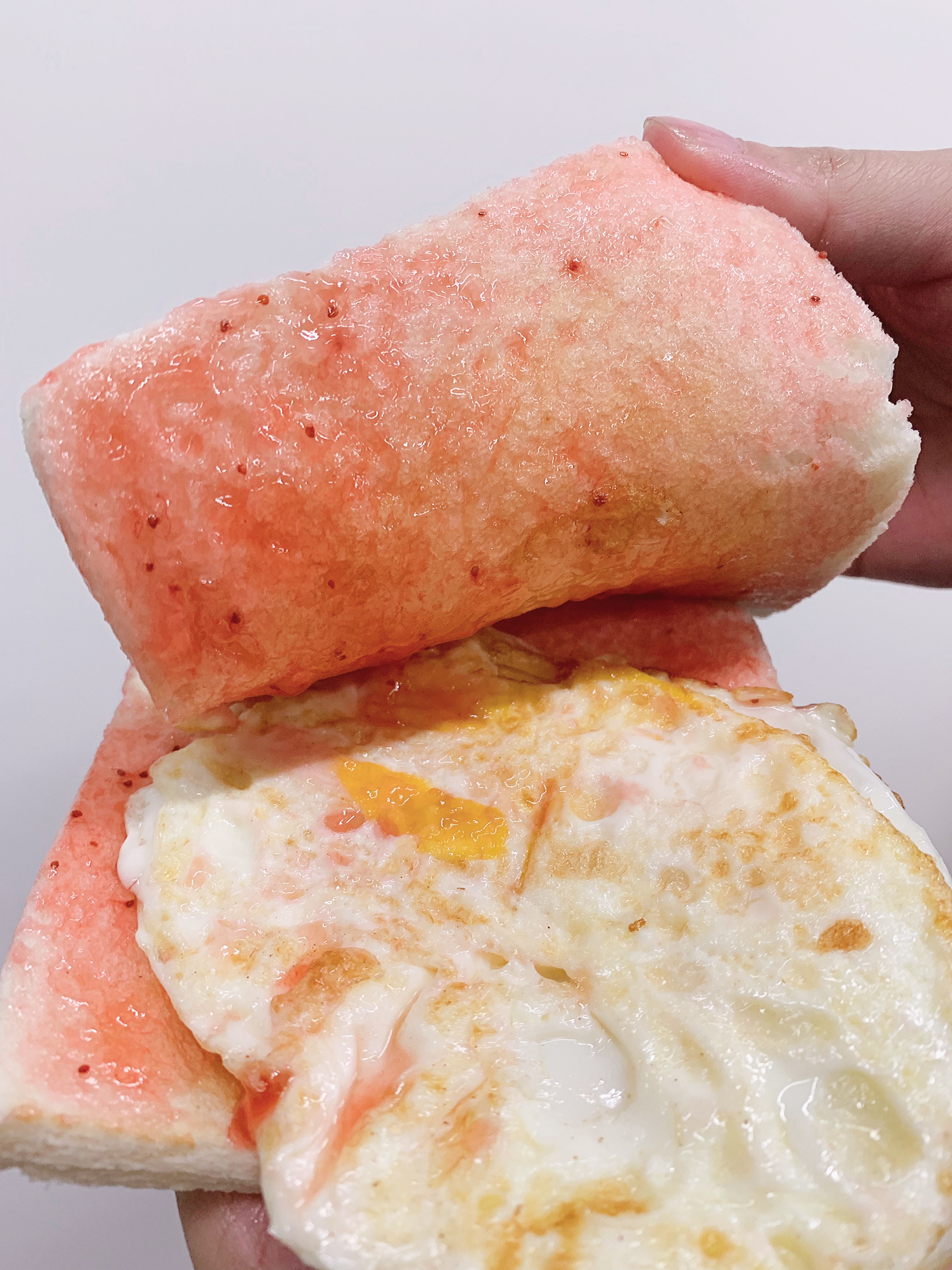 ▼入門款「草莓吐司+蛋」聽到可能覺得有點噁心,但這是許多人從小吃到大的經典口味啊!甚至是巧克力、花生、奶酥吐司加蛋都有各自的鐵粉擁護呢!小編覺得吃到最後有點膩…但還算能吃啦!