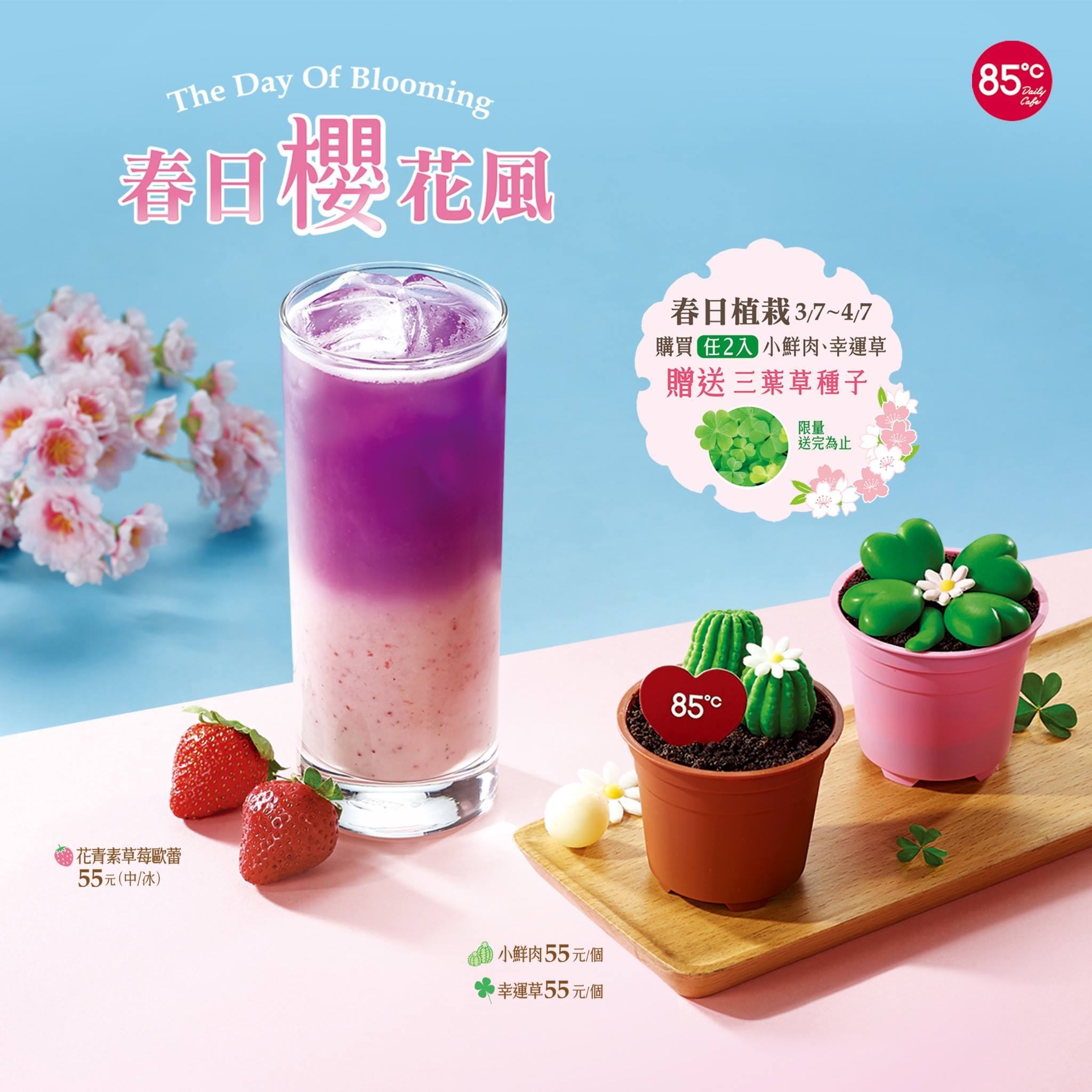 ▼85˚C正舉辦「春日櫻花季活動」,吃小盆栽蛋糕的時候,建議搭配「花青素草莓歐蕾」,帶給你一個粉嫩的春天!