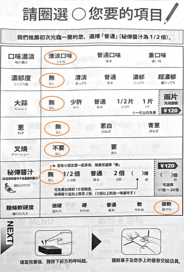 ▼那你知道,到底要怎麼填單,才能吃到真正美味的ㄧ蘭拉麵嗎?