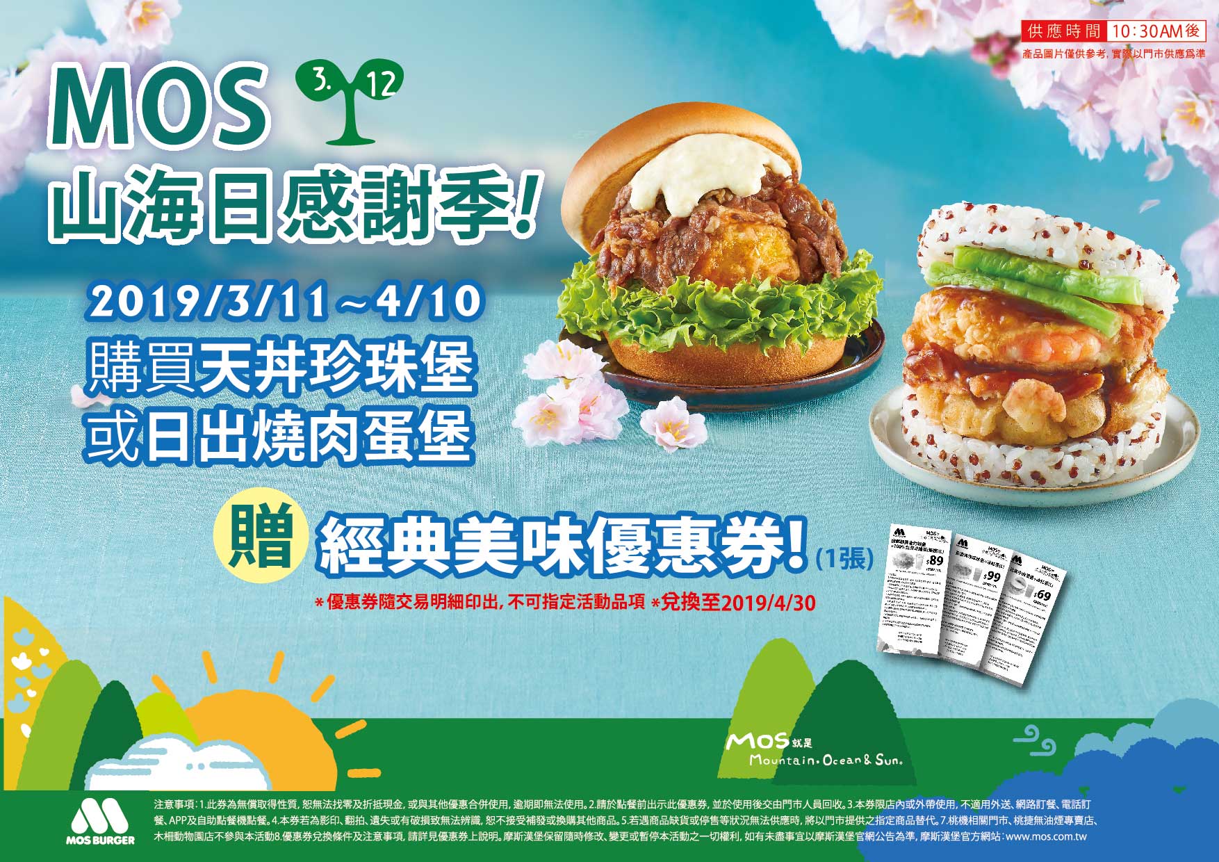 ▼若在4/10以前購買摩斯漢堡期間限定新品,還能獲得經典美味優惠券,每週贈送的品項皆不同。