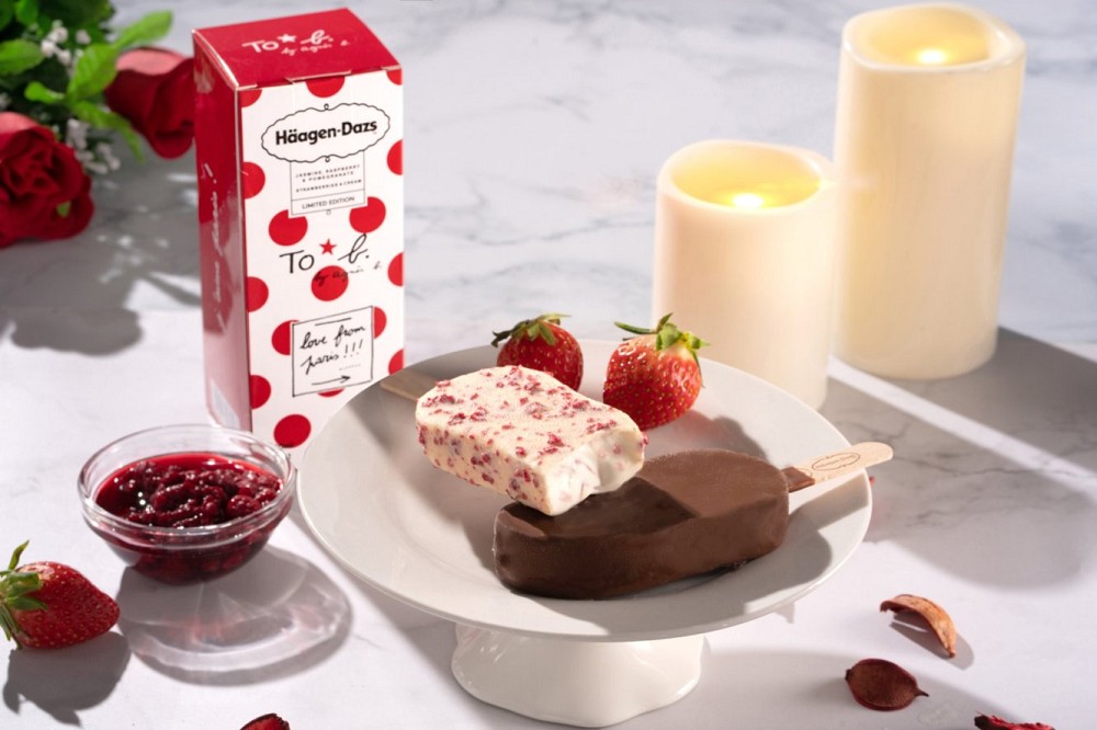 ▼限量雪糕有兩種口味分別是「To b. with you 在一起 BAR」及「To b. your BFF 與我分享 BAR」,你不敢說的就用Häagen-Dazs幫你告白吧!「To b. with you 在一起 BAR」是『茉莉覆盆子石榴雪糕』與『草莓雪糕』,味道就像初戀一樣,曖昧不明又甜蜜到炸的粉紅心情,害怕說不出自己的心意嘛?那就用這支雪糕告訴他吧!