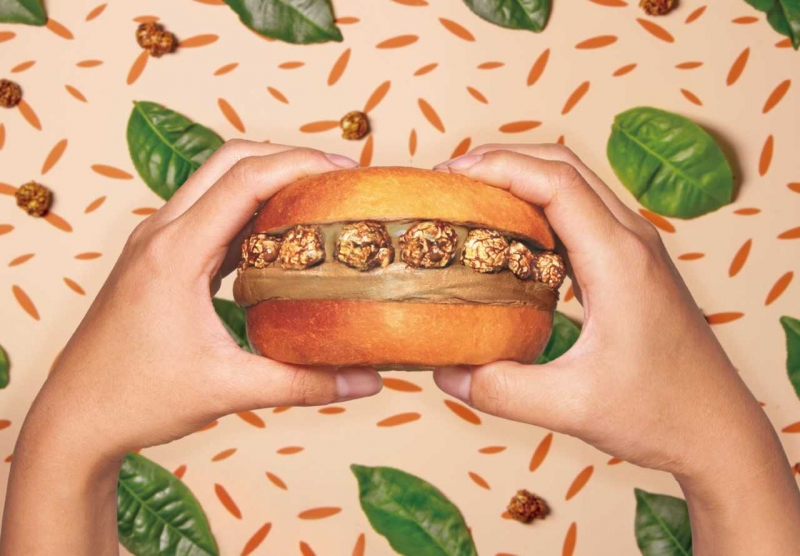 ▼《好丘》的貝果口味創意無限,每年可達20多種貝果口味,其中累積最多種的是台灣味貝果,在近日推出特別研發的新款「紅玉爆米花」厚醬貝果,選用花蓮「舞間茶心」茶商的紅玉茶葉,特製出紅玉鮮奶茶抹醬,在外層裹上太妃糖將與低溫研磨的有機紅玉茶粉,那濃郁的茶香與焦糖相遇,蹦出一股迷人的甜香氣。