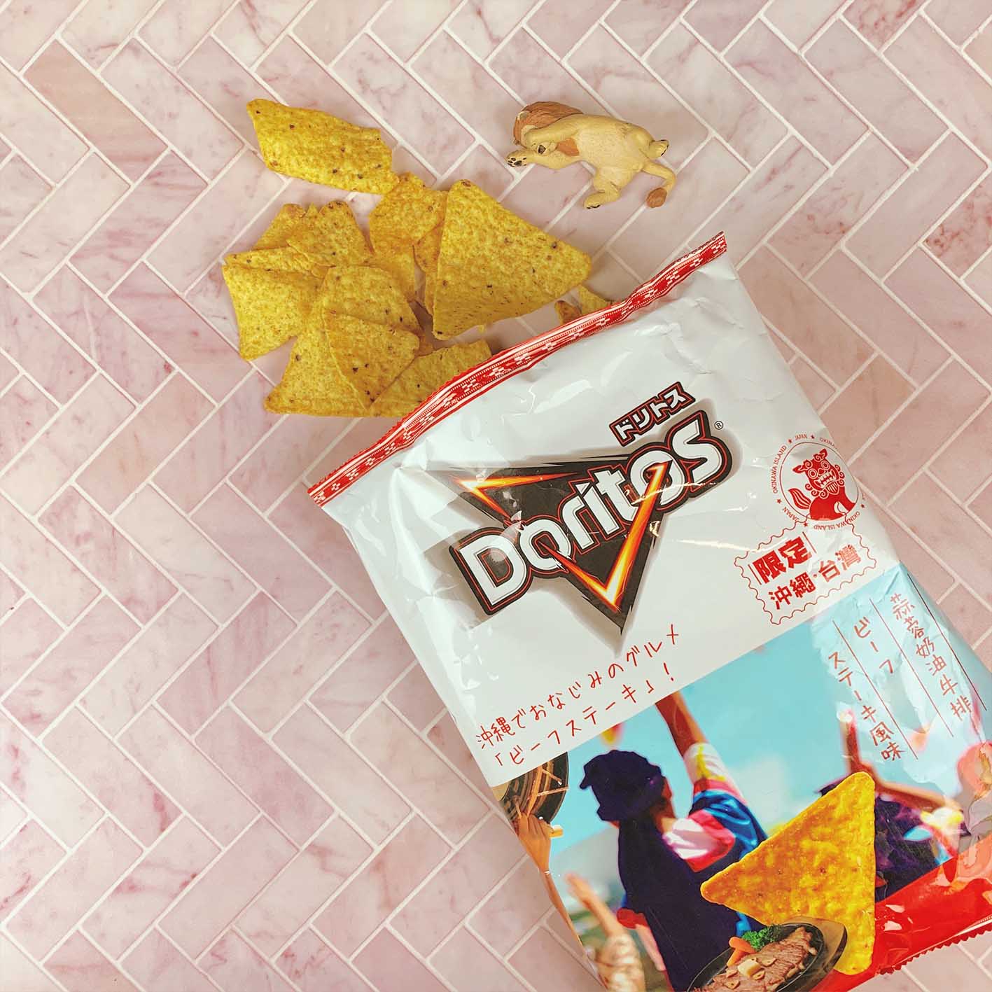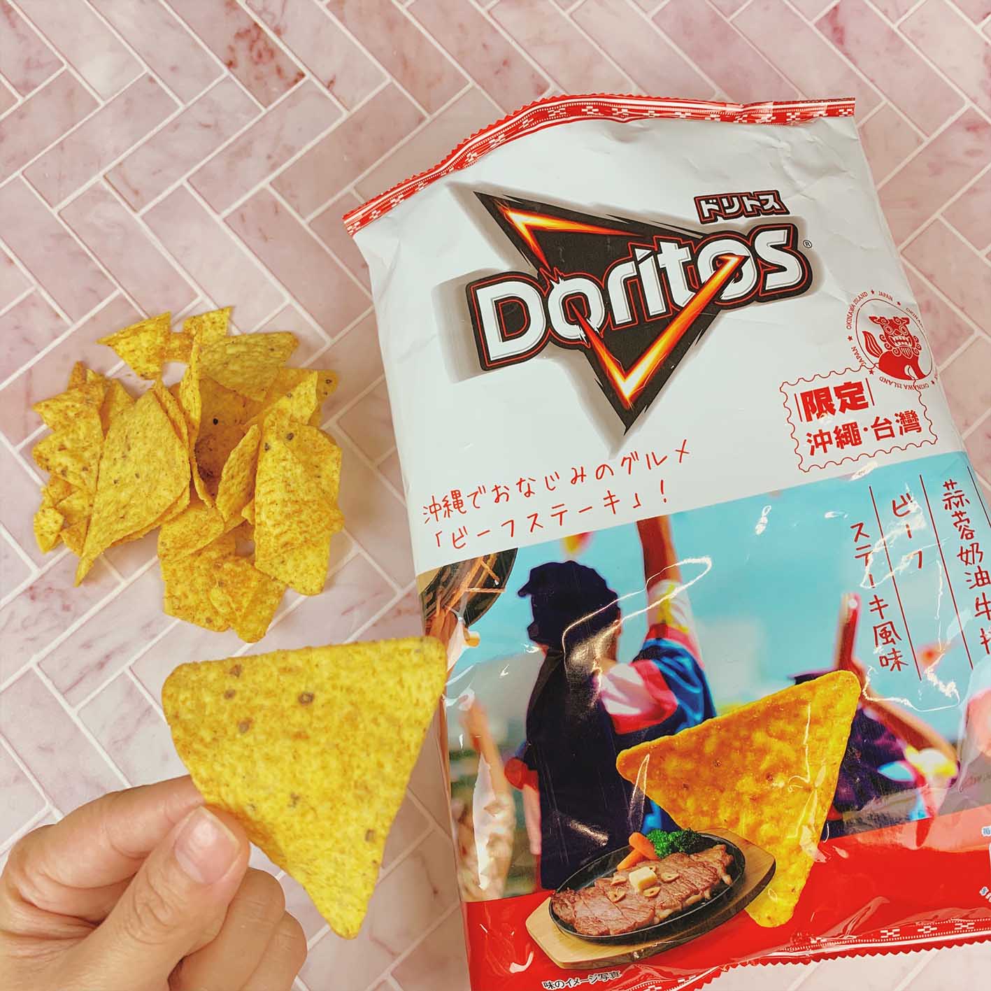 沖繩麵洋芋片一吃下去,對沖繩麵的記憶瞬間湧上腦,就是這個味道啊~~多力多滋的蒜蓉牛排也是大推,小編覺得比原味起司更好吃,鹹淡適中,真的會忍不住一口接一口吃~~