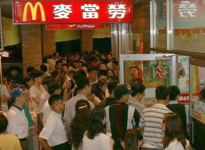 ▼當年新店的麥當勞安康店才開店10分鐘,玩偶就已經被搶購一空,可是買不到的民眾仍然在門口不肯離去。