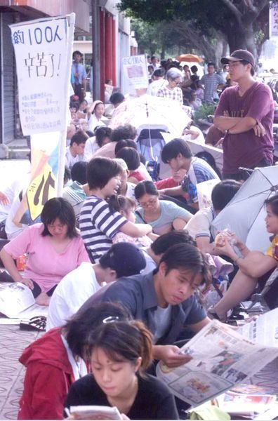 ▼為了成功搶購無嘴貓玩偶,民眾紛紛各出奇招,除了一家老小全員出動提早來排隊之外,許多人也自備椅子、板凳,甚至還有人坐著輪椅也來排隊。一些店家也不忍民眾在烈日底下排隊,還派出服務生送飲料給大家解渴!