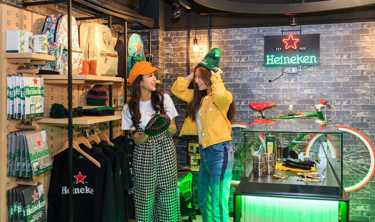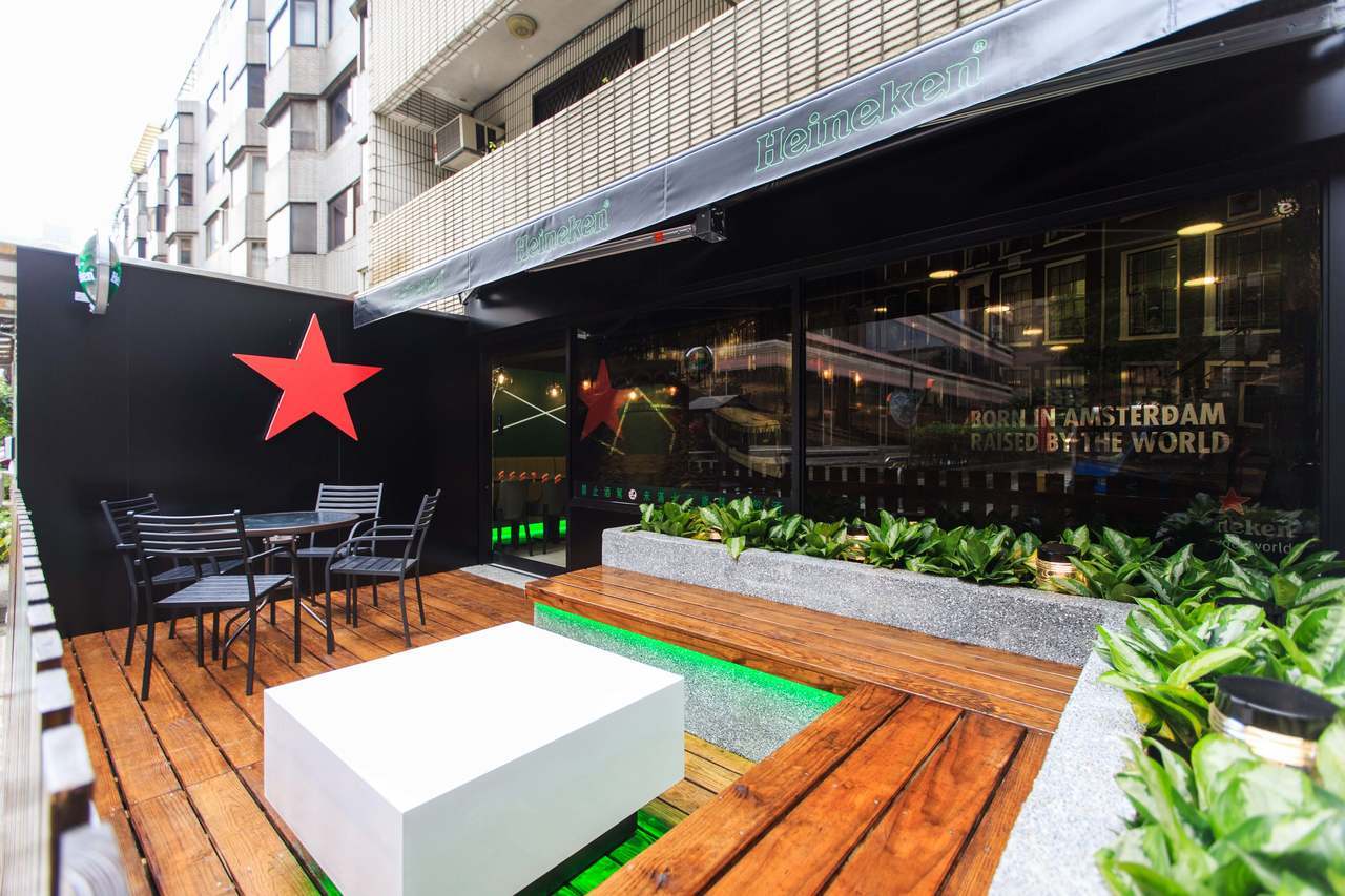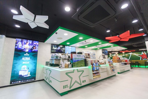 ▼台北南京門市「海尼根聯名店」,以綠白色為主要基底,大大的紅色星星正是海尼根聯名店最大特徵,讓整間店有種想喝杯啤酒的感覺~