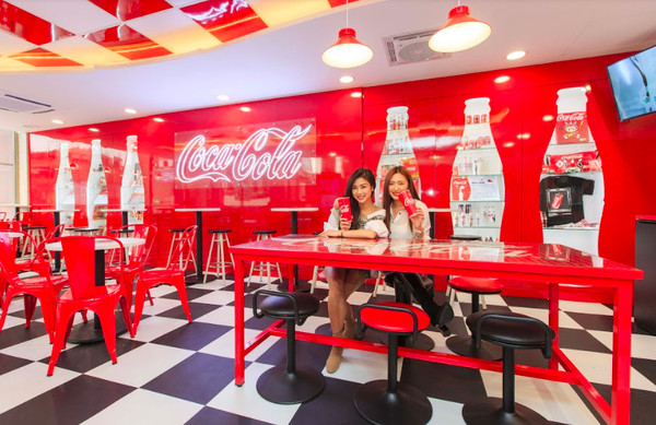 ▼台北威京門市「可口可樂聯名店」,全店以可口可樂招牌紅色為主題,隨處都能見到可口可樂經典Logo,牆上還有可樂瓶裝造景,整間店有充滿活力的氛圍。