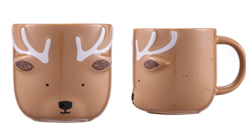 ▼『水鹿共愛馬克杯』(售價$550)。台灣水鹿受到狩獵壓力和棲息地影響後,目前水鹿分佈越來越侷限在高山地區,保護狀態屬於易危物種(VU)。