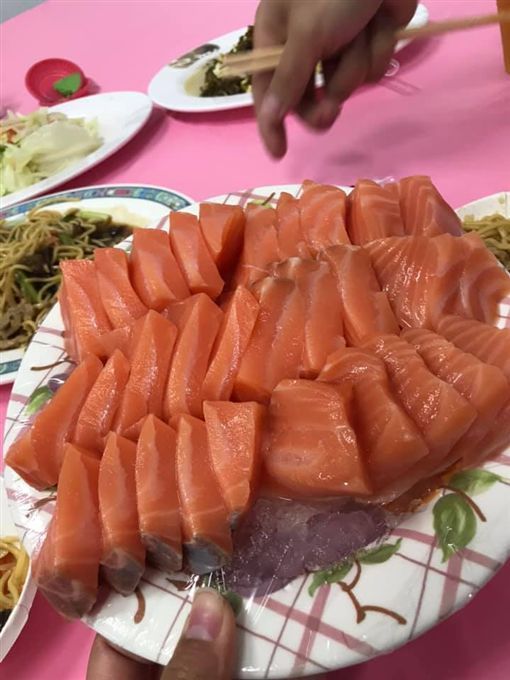 ▼女網友在爆怨公社PO文表示,在墾丁後壁山海產店點了一盤200元的鮭魚生魚片,沒想到送上桌時,30片肥美的鮭魚生魚片多到快滿出盤子!每一片厚度超誇張!女網友驚嘆表示「老闆不用做生意了逆?」。