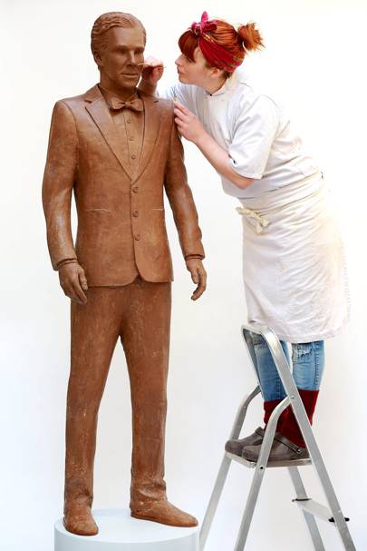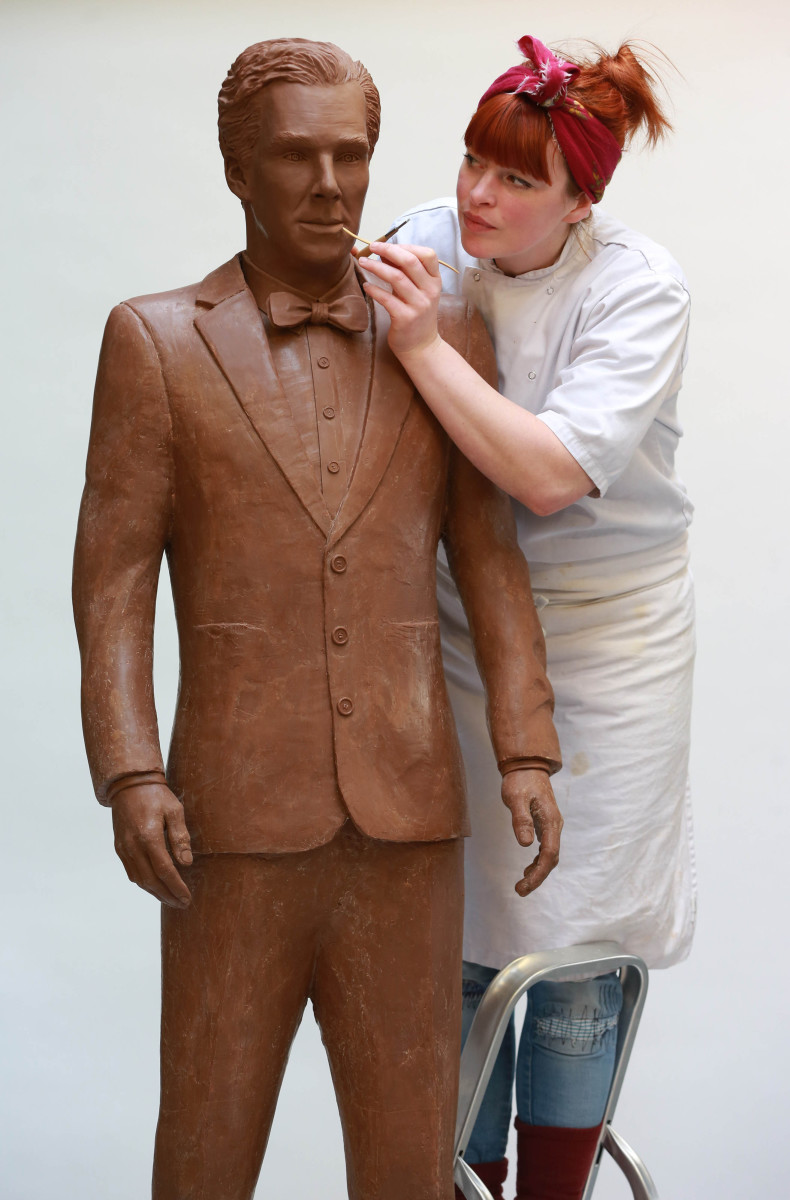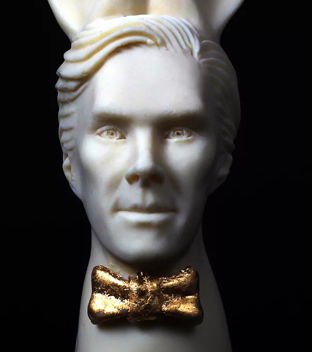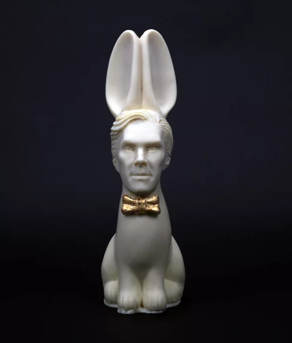 ▼隔年他們再度合作,Jen 以男神充滿棱角的俊俏面孔作為藍本,製作出了許多栩栩如生的班尼迪克康柏拜區巧克力,以復活兔的形象出現。