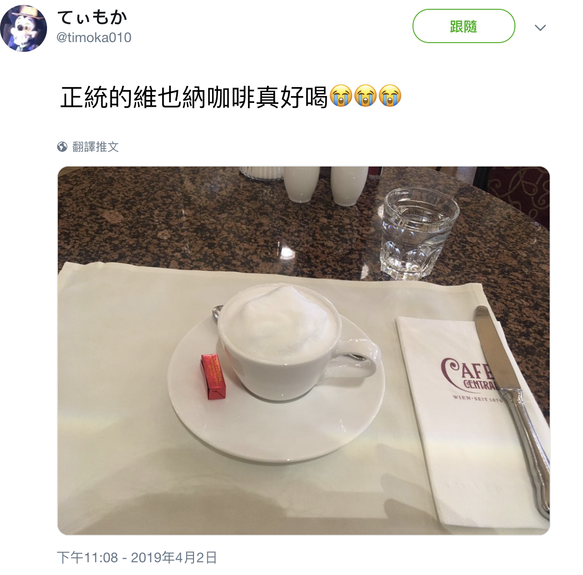 ▼「維也納咖啡(Wiener Kaffee)」發祥於維也納,原指在濃縮咖啡(Espresso)中加入溫牛奶,上面再另外覆上一層奶泡的咖啡。