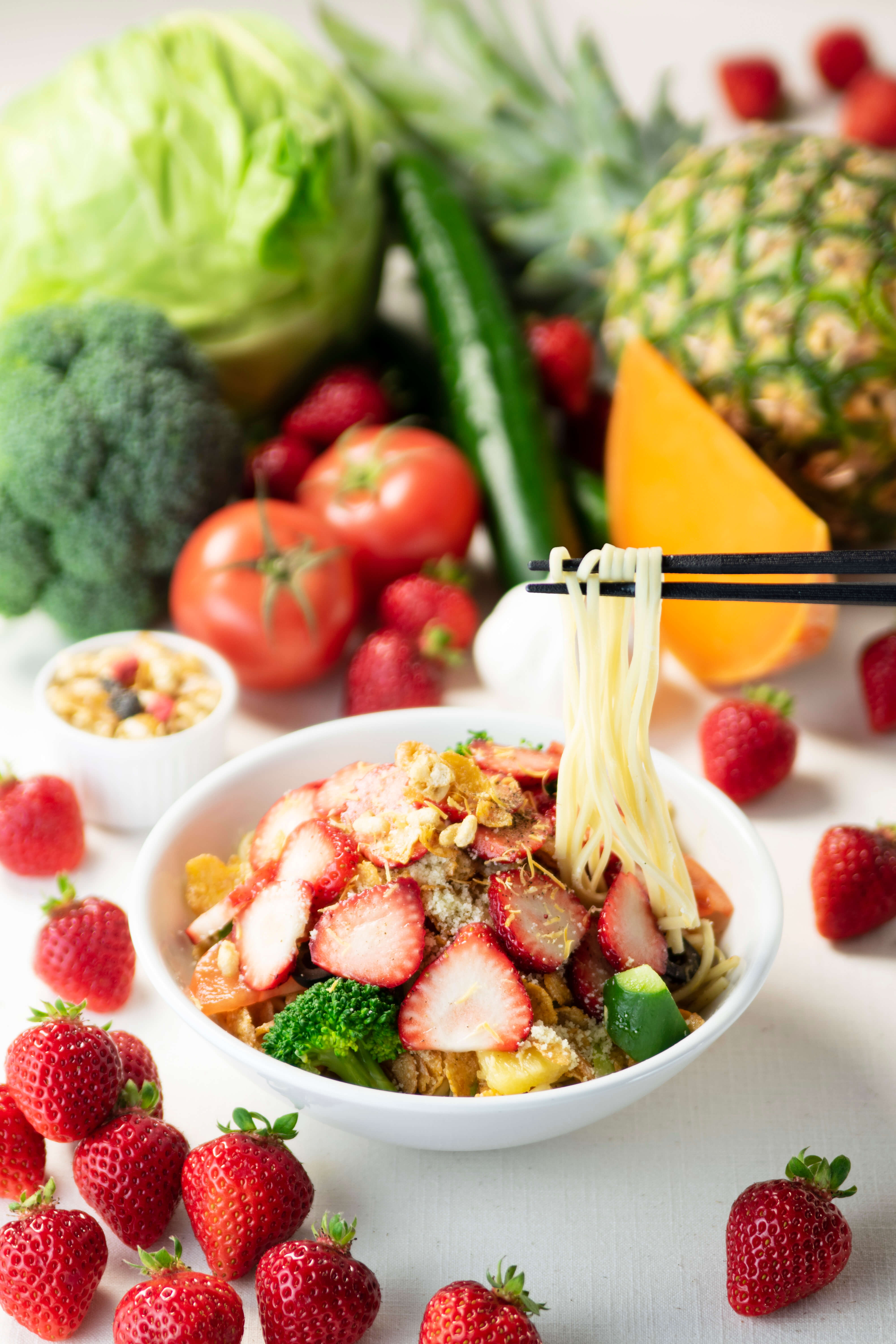 這款限定販售的拉麵名字怪怪的,吃起來怎麼樣呢?先來看看「超♡一風堂∞拉麵」的製作方法:將豚骨、咖哩香料、蒜油加在一起,再搭配草莓、鳳梨等水果,還有番茄、花椰菜等蔬菜,最後加上水果麥片、起司等食材。