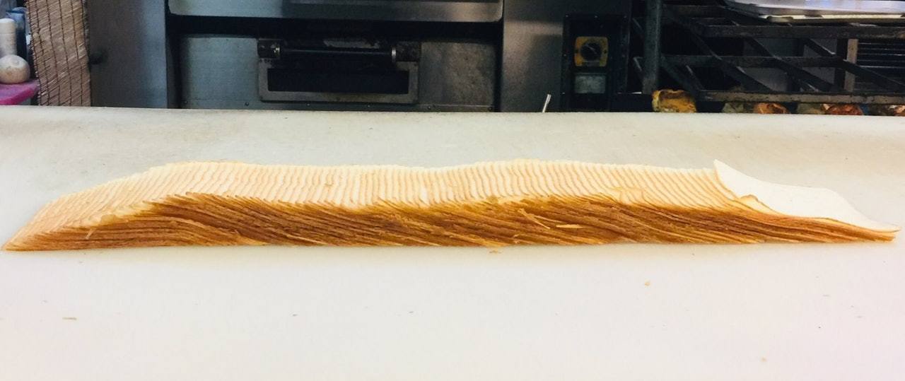 ▼最後她將這107片吐司做成「三色千層酥」,讓在場的所有人一起吃掉,也被問到「差一塊就是108了,會不會覺得很可惜呢?」,師傅表示目標是111片,但這也是一項挑戰而已,如果要做法式千層酥的話,追求口感來說,90片是最好的!