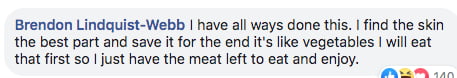 ▼剝皮吃雞塊的怪人不止Sameer一個,有網友說:「我都是這樣吃。我最愛吃雞塊的外皮,都是把這一部分留到最後吃。就像平時吃飯的時候先吃蔬菜,最後享受美味的肉。」