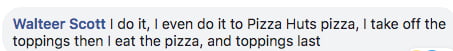 ▼「我是這樣吃的,吃披薩的時候也有這樣的習慣,先吃掉麵餅,再吃最上面的餡料。」