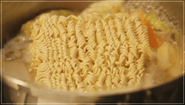 ▼5.水燒開後,加入拉麵繼續煮2分鐘(拉麵中的調味粉包不要加入鍋中,直接灑在碗裡)。